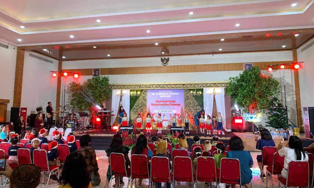 KB/TK Kanisius Cempaka 1 menggelar Perayaan Natal Anak di Graha Sasono Mulyo, Wonogiri, Sabtu (17/1/2026). Kegiatan ini merupakan agenda rutin tahunan yang bertujuan memberikan pengalaman rohani sekaligus memperkuat kebersamaan anak-anak sejak usia dini bersama keluarga.